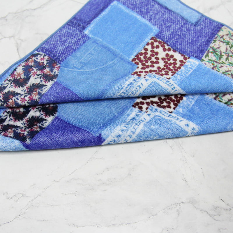 Ovaj digitalni tiskani kvadratni šal koristi svu uvezenu tintu i ima jaku i visoku boju. Naknada za nisku uzorku, nema potrebe za izradom ploča, neograničeno podudaranje boja i dizajn uzoraka.