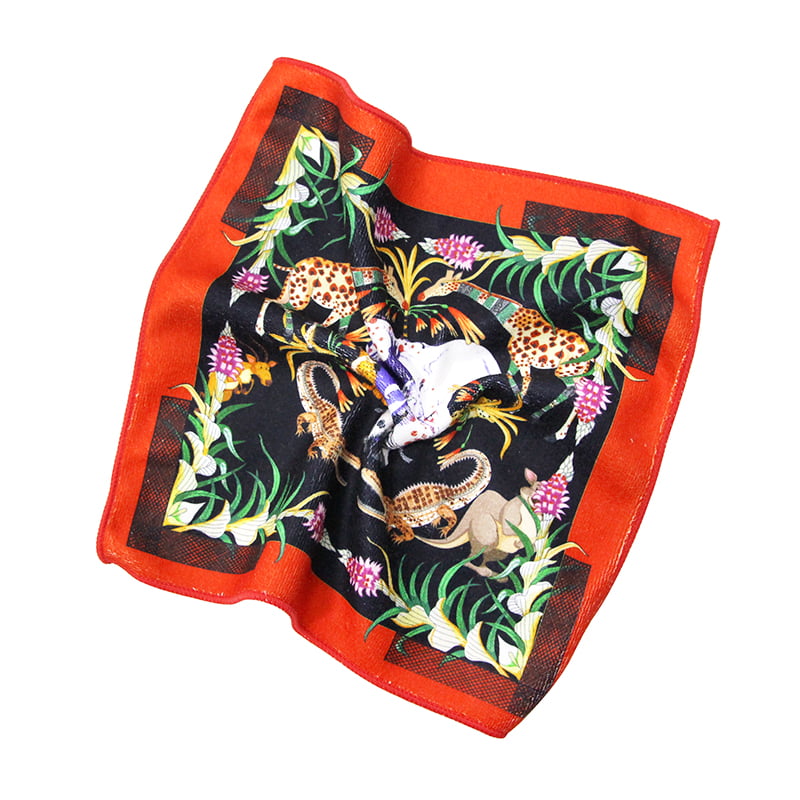 Ovaj kvadratni šal koristi tkaninu od jedne bočne poliestera i jednog bočnog pamuka, s tehnologijom ispisa topline, svijetle boje, udobne i prozračne.